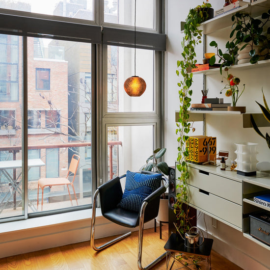 The Coral Pendant is a plug-in, renter-friendly style, featuring an extra long cord and two brass swags for easy install and variable configuration.