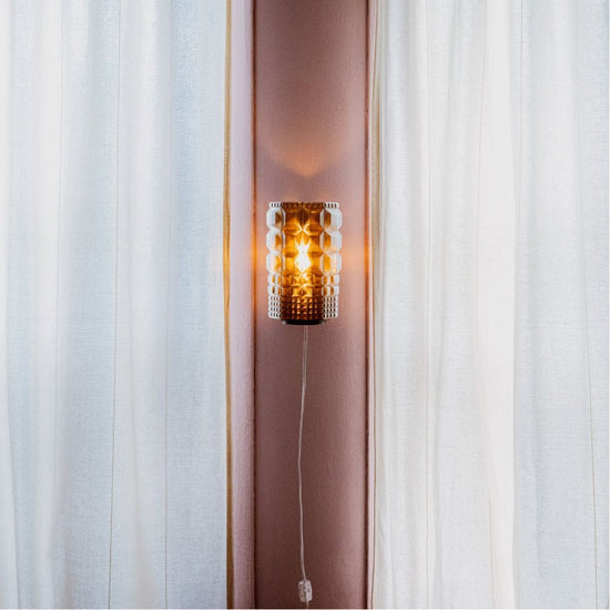 The Gem Sconce's design emerged from a series of sketches designer Christopher Merchant created while wandering through the Brooklyn Botanic Garden. Captivated by the surrounding architecture and lush gardens, he found particular inspiration in the geometric beauty of the greenhouses. These sketches also evoked a cherished childhood memory of sunlight filtering through glass bricks at a pool, making the Gem Sconce a tangible expression of past and present inspirations.