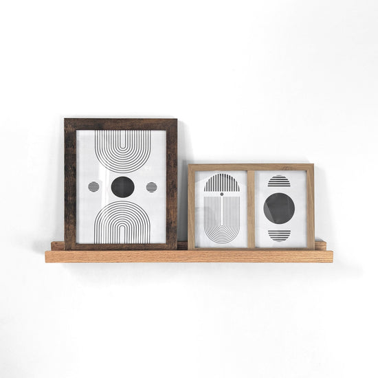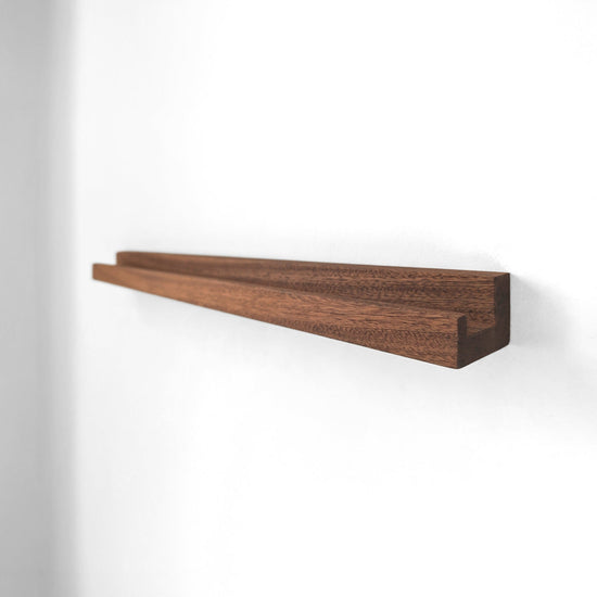 Display your favorite photos, prints, and art with this handcrafted picture ledge shelf. Made from solid wood oak or mahogany, our photo ledge showcases your style with a warm and natural approach on your gallery wall or entryway. The slim profile is ideal if you want a thinner footprint but provides enough room for frames, canvas pieces, or artwork. Simple and functional, it's easy to hang and made to last. The floating picture rail shelf is perfect for lending a simple, modern feel to any space.