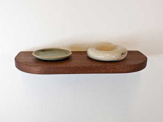 Our custom oak floating shelves with rounded corners in small to medium sizes are a perfect complement to your home or business. Custom wooden shelves provide a touch of laid-back refinement and offer an attractive option to display your most prized possessions. Expertly handcrafted in Brooklyn, NY by a bespoke team of woodworkers, each small to medium-sized oak floating shelf has minimalistic soft rounded edges and is finished with warm Danish oil to reveal the natural beauty of every whirl, knot, and loop in the high-quality oak wood grain. The small to medium oak shelves from NookWoodworking vary in size from 6 to 36 inches in length, 3 to 8 inches in depth, and are ⅞ inches thick. Each durable light to medium-duty oak wood shelf can easily be installed directly into drywall or studs for a clean bracketless look.